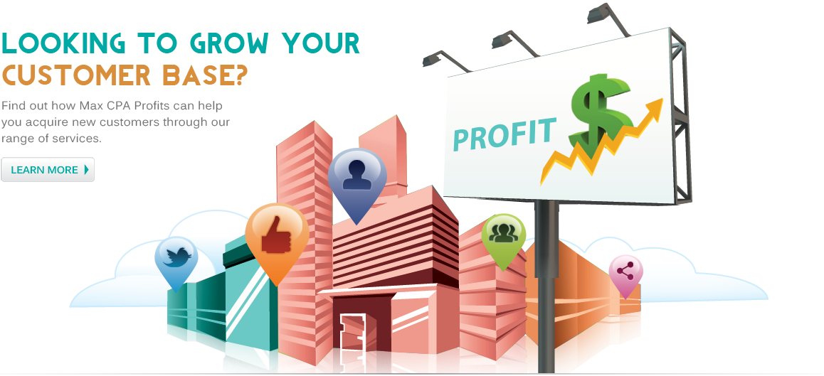 At Max CPA Profits we specialize in helping our clients build databases, create or expand member loyalty programs and ultimately acquire new customers by pinpointing your target market. we do this through a range of different avenues such as Lead Generation, Affiliate Marketing, Social Media Marketing, Email Marketing and a range of other methods.